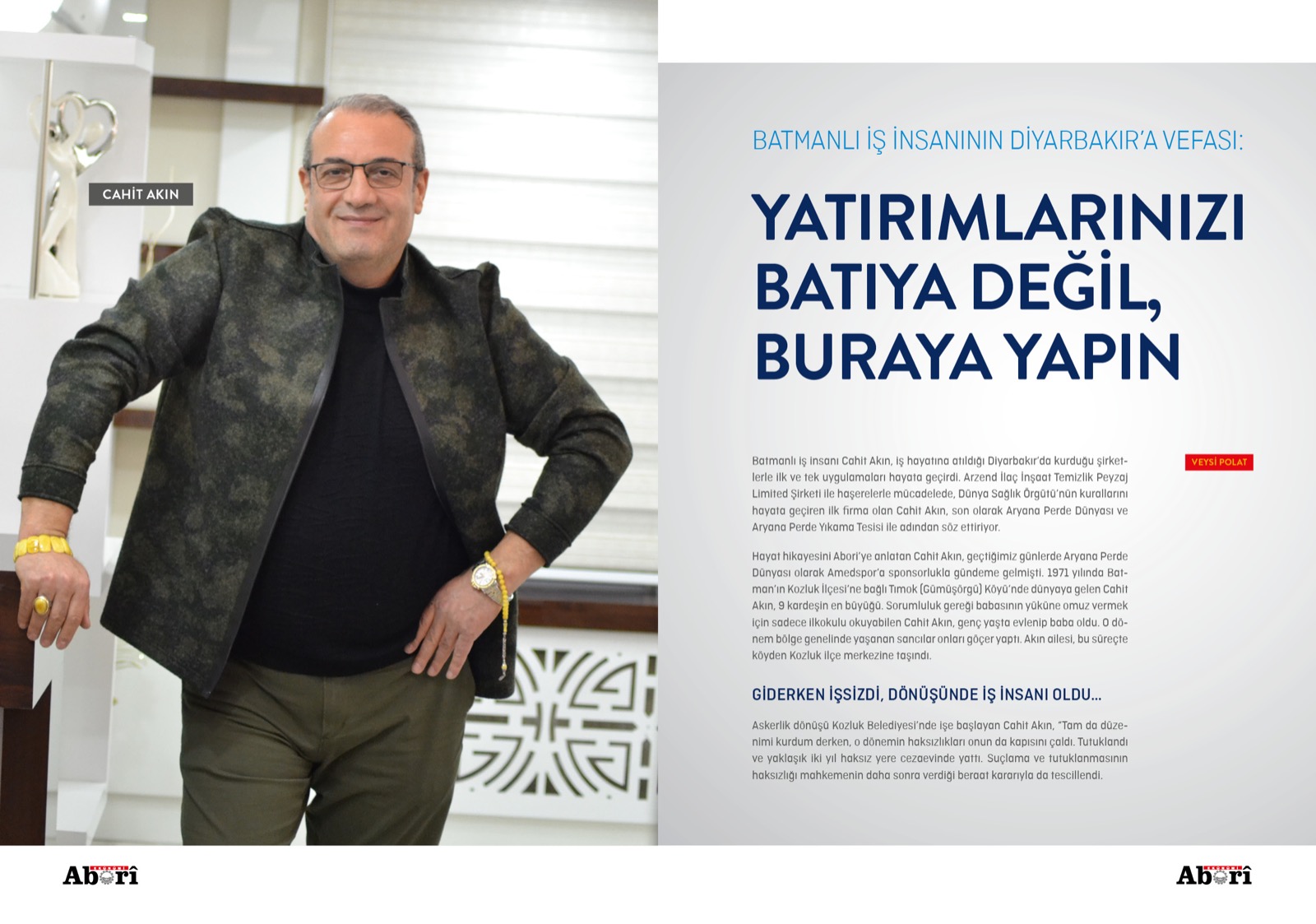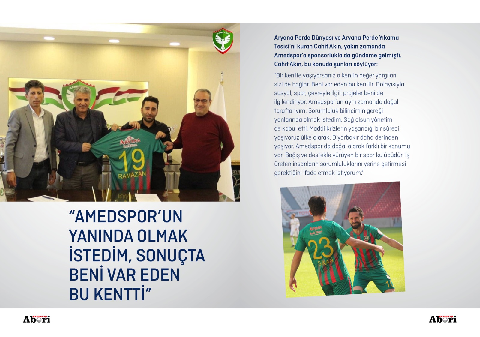 Aryana Perde Dünyası ve Aryana Perde Yıkama Tesisi’ni kuran Cahit Akın, yakın zamanda Amedspor’a sponsorlukla da gündeme gelmişti. Cahit Akın, bu konuda şunları söylüyor: