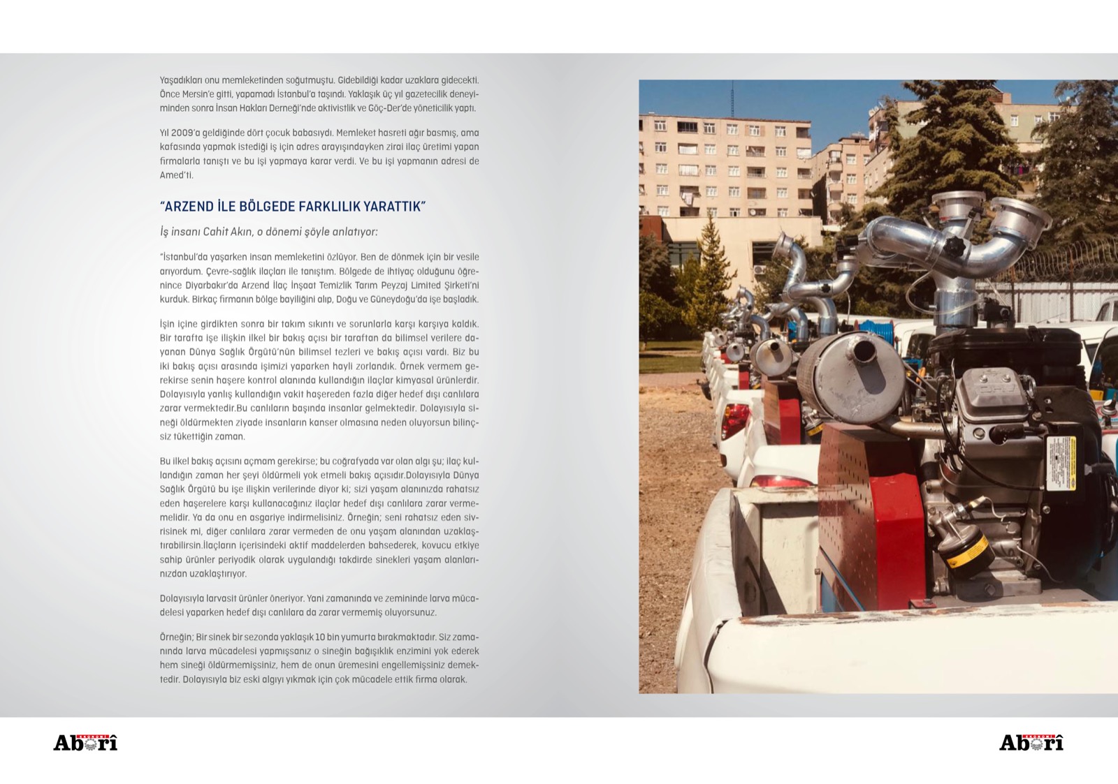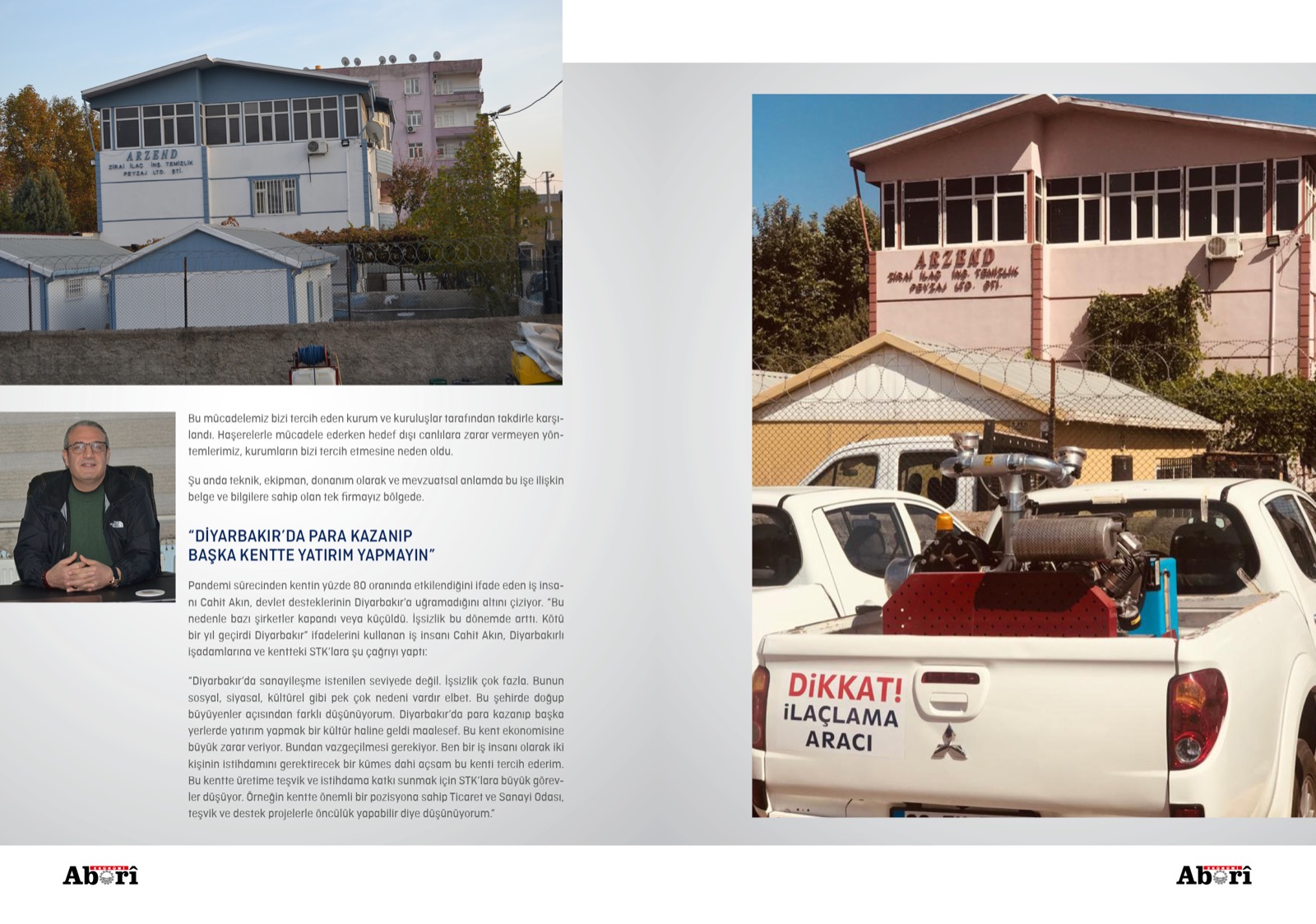 “İstanbul’da yaşarken insan memleketini özlüyor. Ben de dönmek için bir vesile arıyordum. Çevre-sağlık ilaçları ile tanıştım. Bölgede de ihtiyaç olduğunu öğrenince Diyarbakır’da Arzend İlaç İnşaat Temizlik Tarım Peyzaj Limited Şirketi’ni kurduk. Birkaç firmanın bölge bayiliğini alıp, Doğu ve Güneydoğu’da işe başladık.