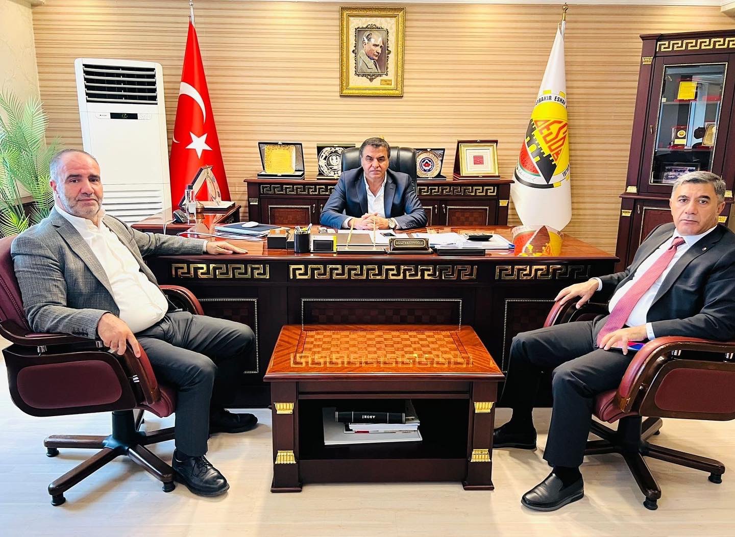 Diyarbakır Ticaret Borsası Başkanı Engin Yeşil ve Yönetim Kurulu Üyeleri, Diyarbakır Esnaf ve Sanatkarlar Odaları Birliği (DESOB) Başkanlığı’na yeniden seçilen Alican Ebedinoğlu’nu ziyaret etti. DESOB Yönetim Kurulu üyelerinin de hazır bulunduğu ziyarette, yerel işbirliğinin önemine ve ortak çalışmanın önemine vurgu yapıldı.